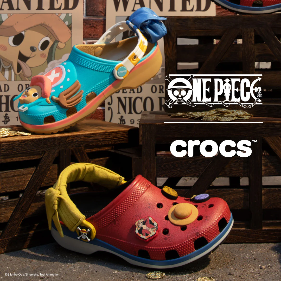 Blending comfort and anime culture, this special capsule brings the adventurous spirit of One Piece to everyday footwear, with each pair featuring interchangeable Jibbitz charms that let fans personalize their design to celebrate their favorite characters and unique style.